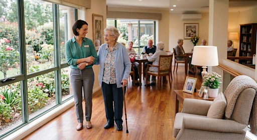 Total care in an independent living community provides comprehensive, 24/7 support that seamlessly manages every physical need while ensuring residents continue to feel empowered and at home in their own private space.